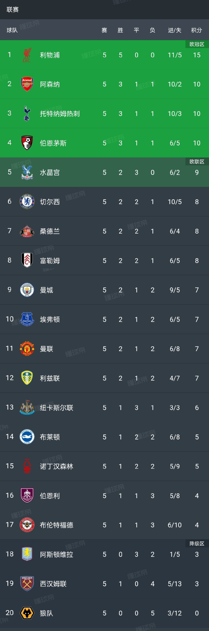 伯恩茅斯表现非常火爆,首轮被利物浦绝杀,此后迎来三连胜。纽卡斯尔联上轮击败狼队迎来首胜。