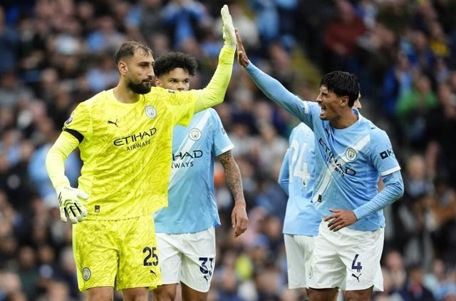 第20分钟,曼城在前场完成抢断,赖因德斯的远射被戴维拉亚扑住。第26分钟,赖斯开出左侧角球,皮球直奔球门,多纳鲁马表现非常冷静,用拳将球打出,如此门将真是好用啊!当然了,就是有点贵。