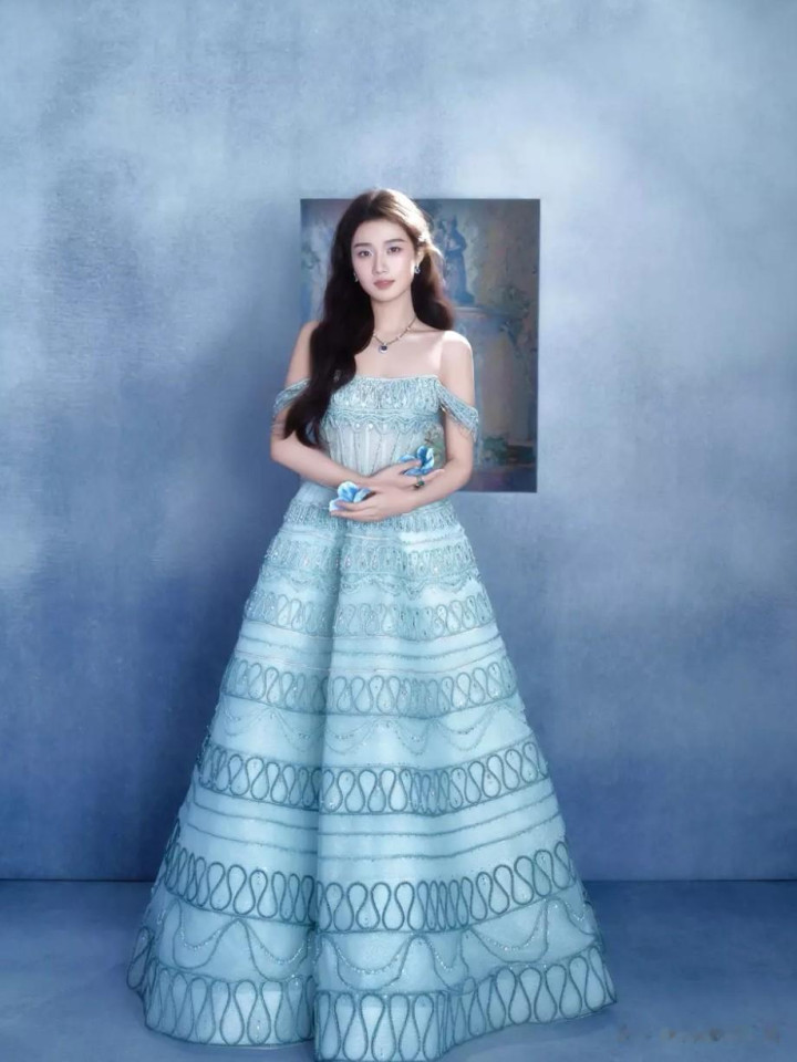 当她站在红毯中央,灯光落在她白皙的锁骨与蓝色裙装上,那一刻的美,无关繁复的装饰,也无关完美的妆造,只在于少女本身的灵动与鲜活。卢昱晓用这条蓝色抹胸裙告诉我们,真正的时尚魅力,从来都是由内而外的气质流露,而非被造型所定义。