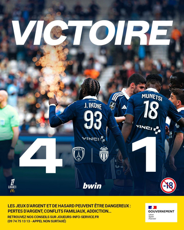 巴黎FC4-1大胜摩纳哥, 伊科内双响, 因莫比莱、巴洛贡破门