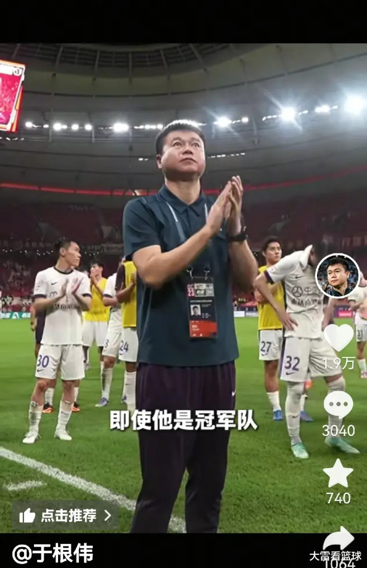 即使他们是冠军;即使我们是客场他们是主场又能奈何我们,你们每个人都有斗志和拼劲,包括信心,都非常棒!感谢大家!这就是于根伟,津门虎队员们心服口服的主教练,这样的于根伟不成功都难啊!
