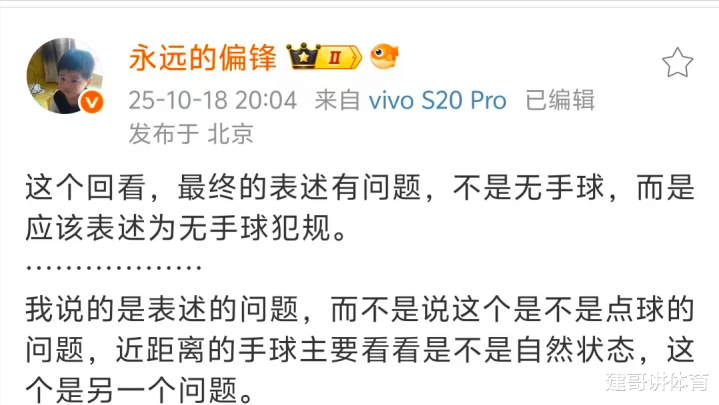 假如这位中超裁判给出的不是点球的理由真是是自己踢到自己手臂上不是点球,那这个理由真的难为这位黑哨了,对于这么明显的手球都不是点球的判罚,知名媒体人陈永的解释则说明了一切,裁判认为浙江队不是没有手球,而是没有手球犯规,手球可以不是犯规,照着裁判这么判罚下去,泰山队下半场基本上很难在客场赢球了。