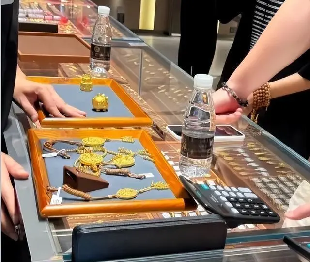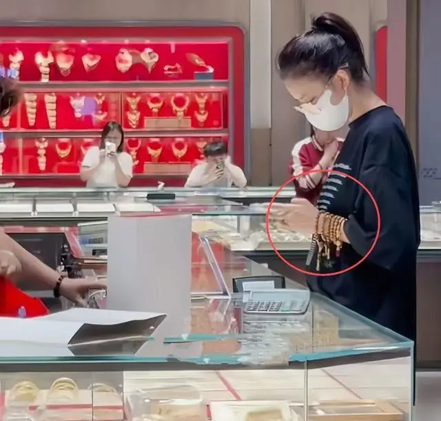 然而,这种表面化的评判在次日便不攻自破。在水贝黄金市场的偶遇照片中,她以完全素颜的状态专注挑选金饰,身边仅有一名助理相伴。面对路人的拍摄,她的坦然自若与红毯上的官方形象形成鲜明对比。更令人惊讶的是结账时的场景:两大托盘的金饰——从传统手镯到卡通造型的挂件,总价值预计达数十万元。