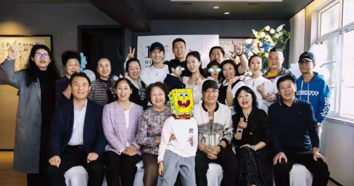 有意思的是小海绵,坐在小表弟旁边,虽然画面打了码,但明显能看出来这孩子蹿个儿了,腿都快垂到地上了。拍合照的时候,奶奶直接把他抱大腿上,稳稳C位,一家人宠得不行。黄晓明当天穿得挺低调,但站在一堆亲戚里还是最打眼的那个,谁能信他都47了?皮肤状态、精神头,一点不输年轻时候。