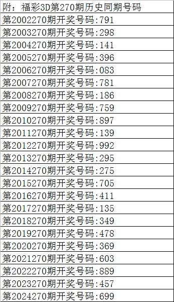 曾哥福彩3D第2025270期推荐: