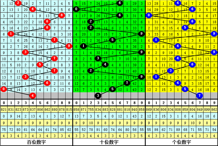 跨度、和值分析:近期跨度主要分布在2-8区域,比较分散,本期看好跨度下降,参考跨度4。和值近期波动范围较大,上期开出和值10,本期看好和值上升,参考和值14。