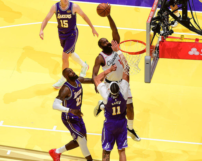 比赛的大多数时间里,在哈登的带领下,快船三军用命,与湖人打得有来有回。